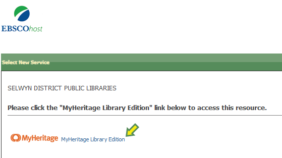 - Click on the "MyHeritage Library Edition" Link (as shown below) to bring up this resource